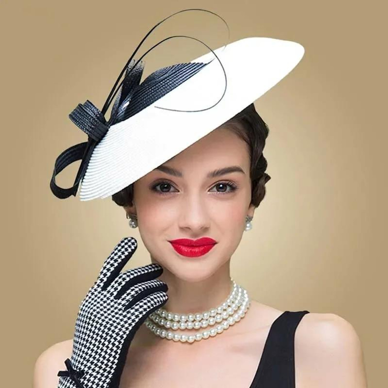Channel classic derby style with this chic black and white sinamay hat – an unforgettable statement for any occasion.