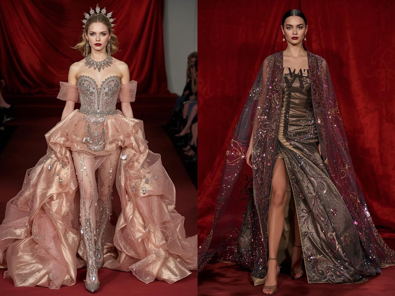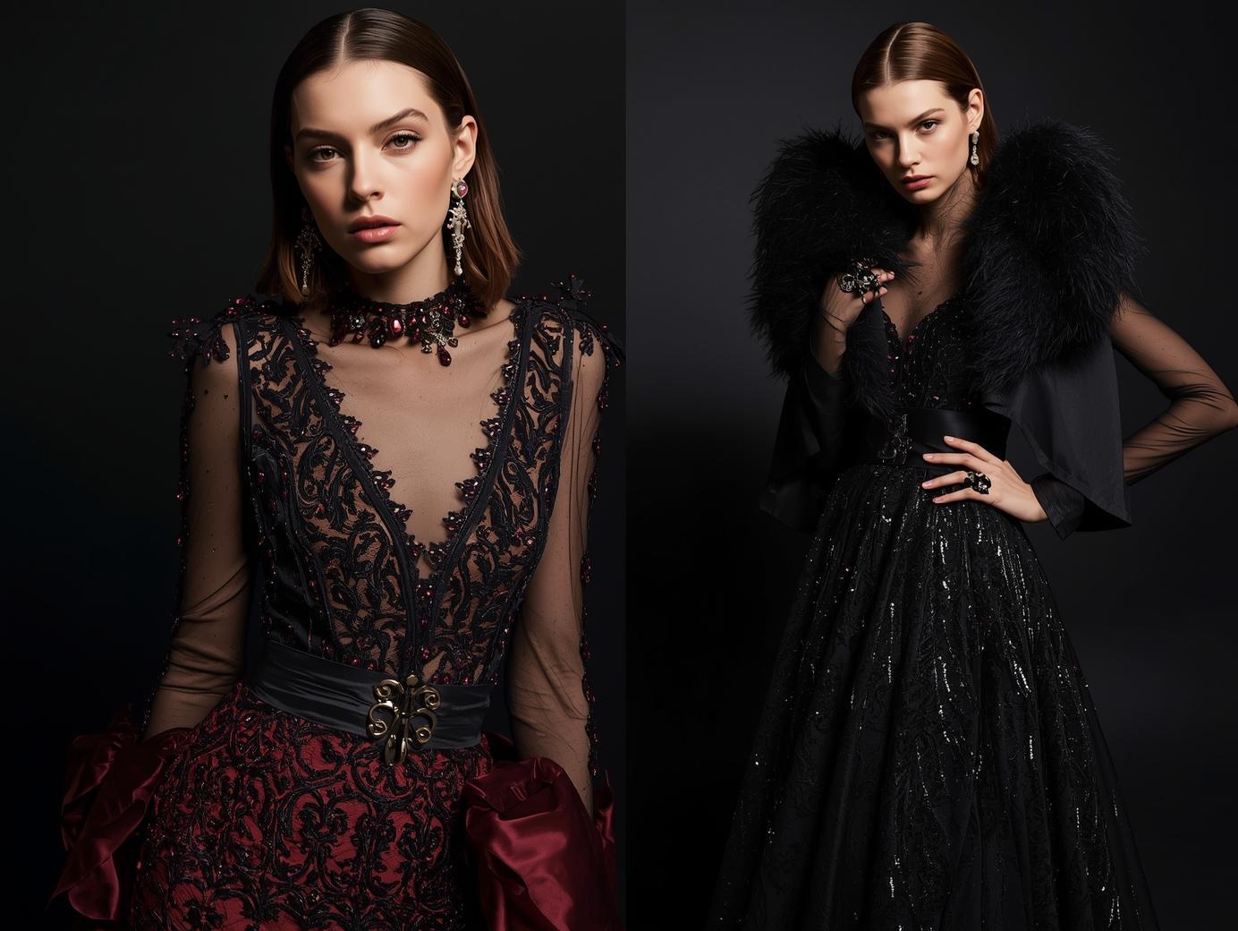 Color palettes in neo-glamour oscillate between striking jewel tones and soft pastels, reflecting both exuberance and subtlety. Fabrics are diverse, incorporating luxurious materials like silk and velvet, while innovative blends with sustainable textiles are gaining popularity. Techniques such as layering, draping, and asymmetry introduce an artful dimension, showcasing that glamour can be both sustainable and bold.